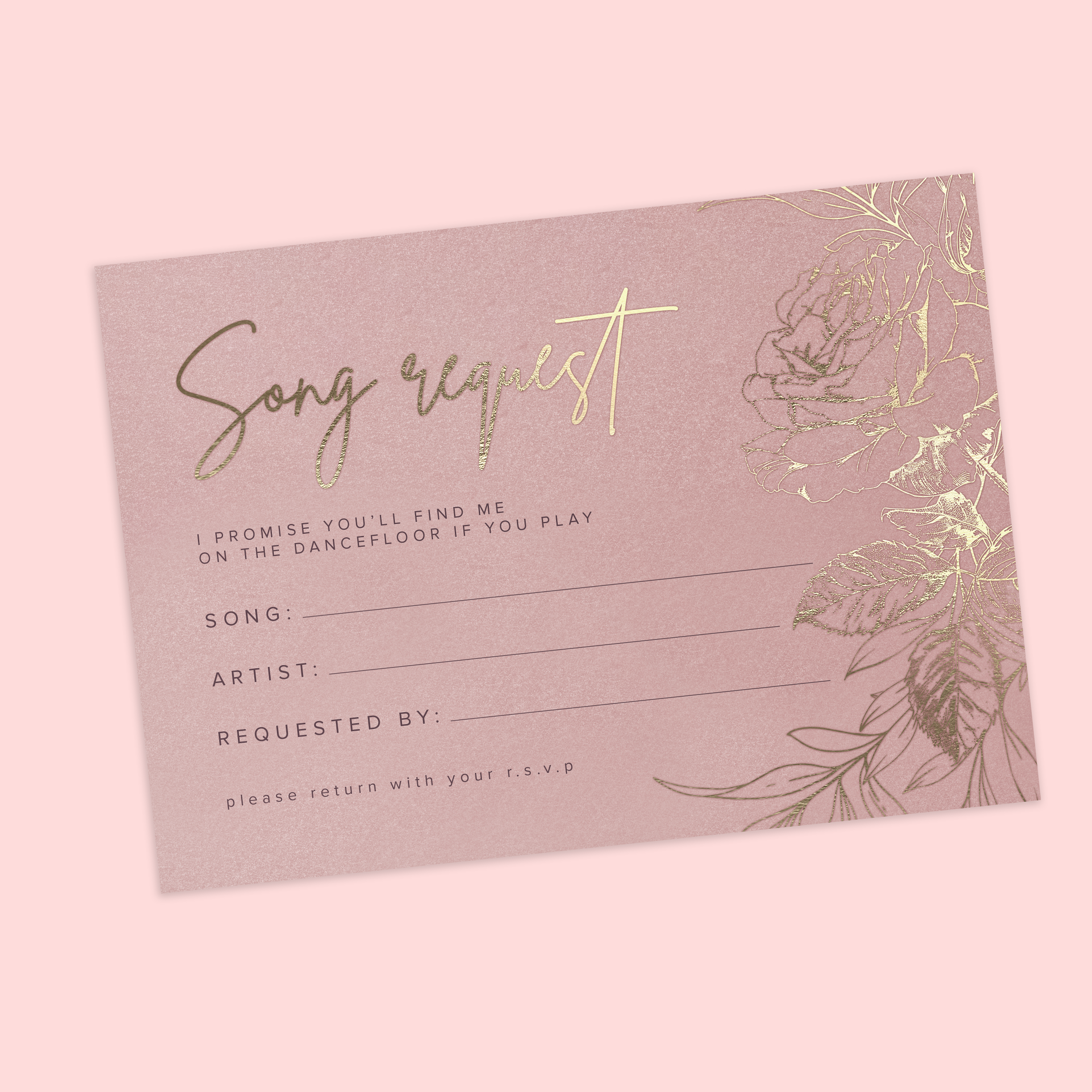 Song request cards allow guests to contribute to the celebration by requesting their favourite music and will add a personal touch to the playlist. These cards ensure the dance floor stays lively and full of memorable moments.