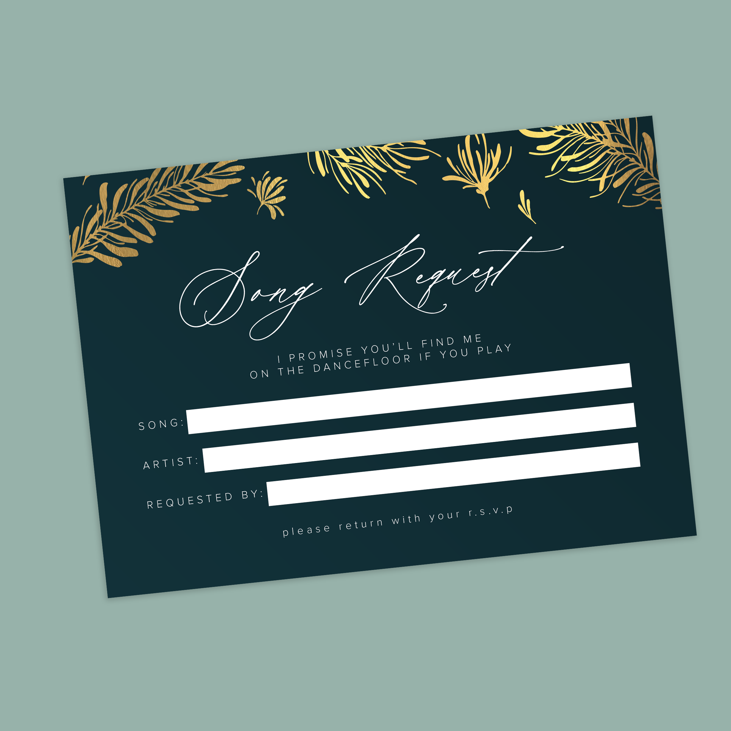 Song request cards allow guests to contribute to the celebration by requesting their favourite music and will add a personal touch to the playlist. These cards ensure the dance floor stays lively and full of memorable moments.