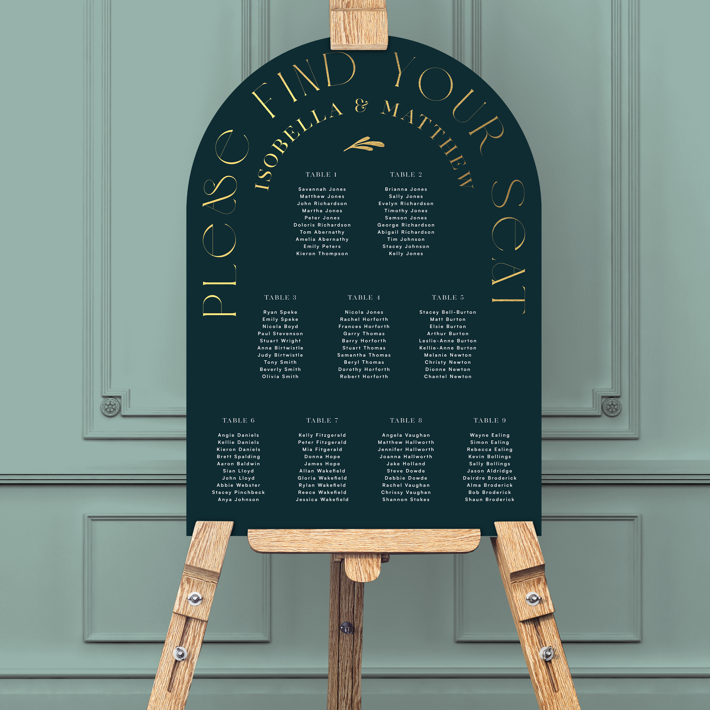 Printed on a choice of boards and sizes, your theme continues on a beautiful seating plan so your guests know where to go. Please note, foil elements on my signboards will be a faux foil effect unless otherwise requested.