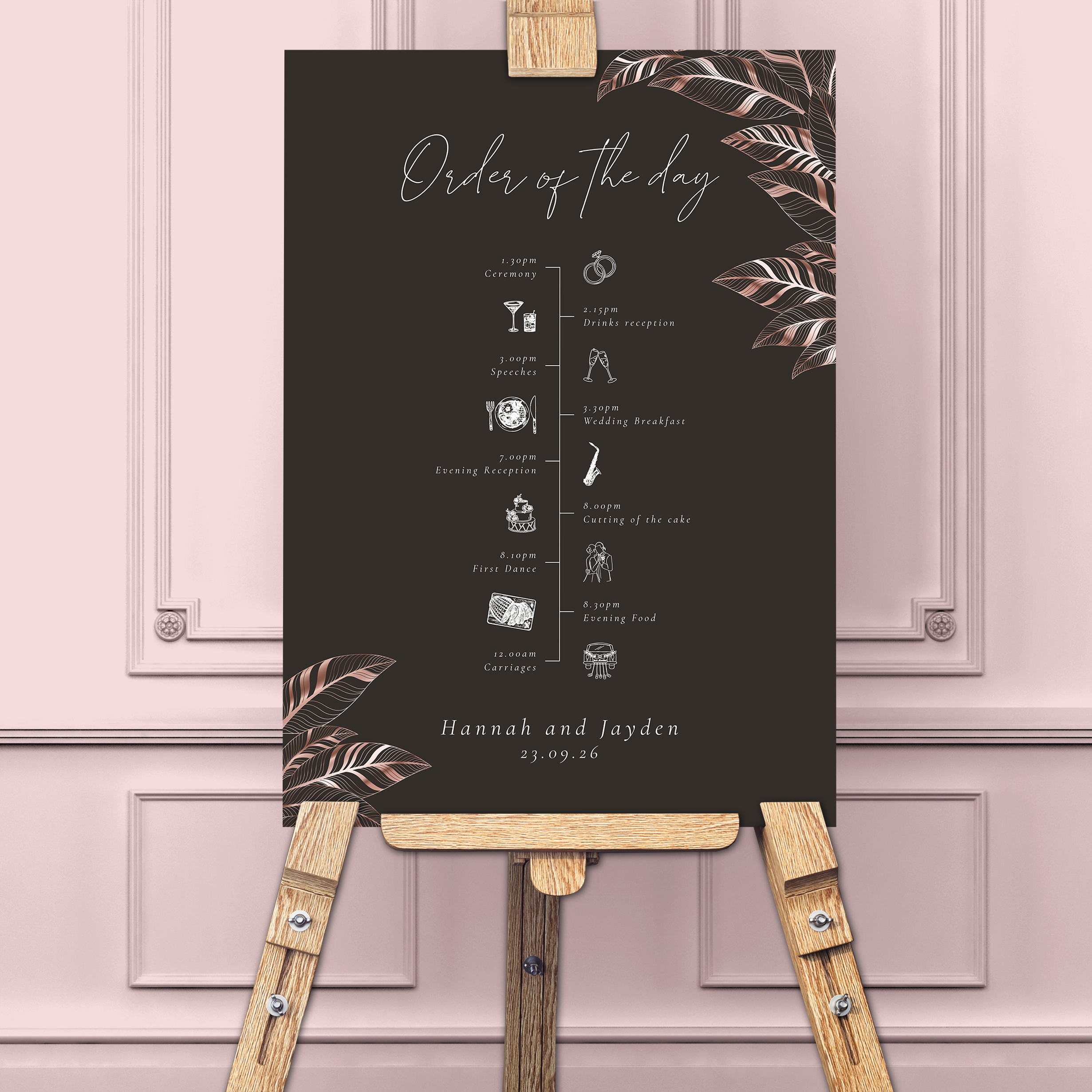 Help everyone stay informed and ensure your day flows smoothly with an Order-of-the-Day sign board. Your Order-of-the-Day will guide guests through the wedding schedule, ensuring they're informed of the sequence of events from ceremony to celebration.