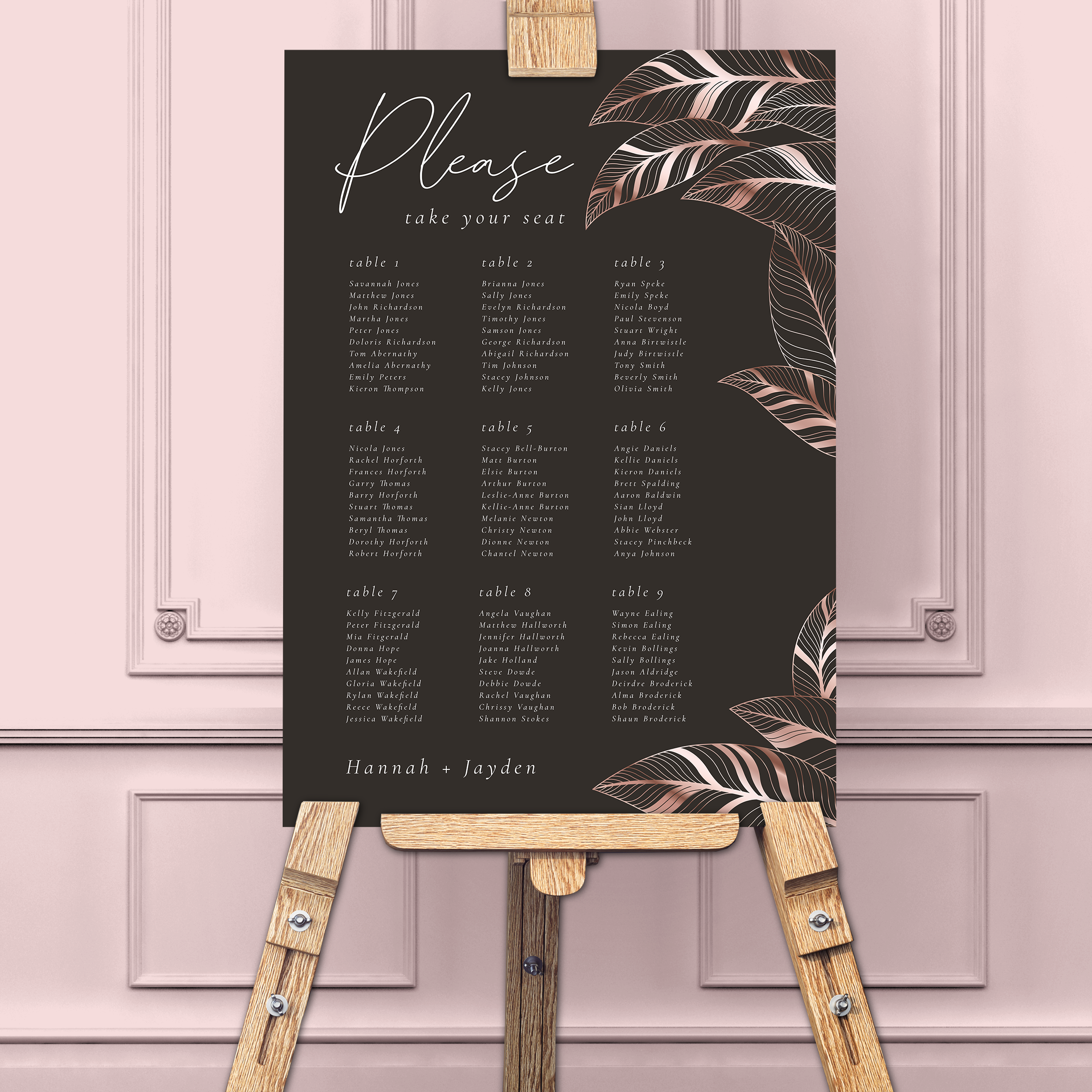 Printed on a choice of boards and sizes, your theme continues on a beautiful seating plan so your guests know where to go. Please note, foil elements on my signboards will be a faux foil effect unless otherwise requested.