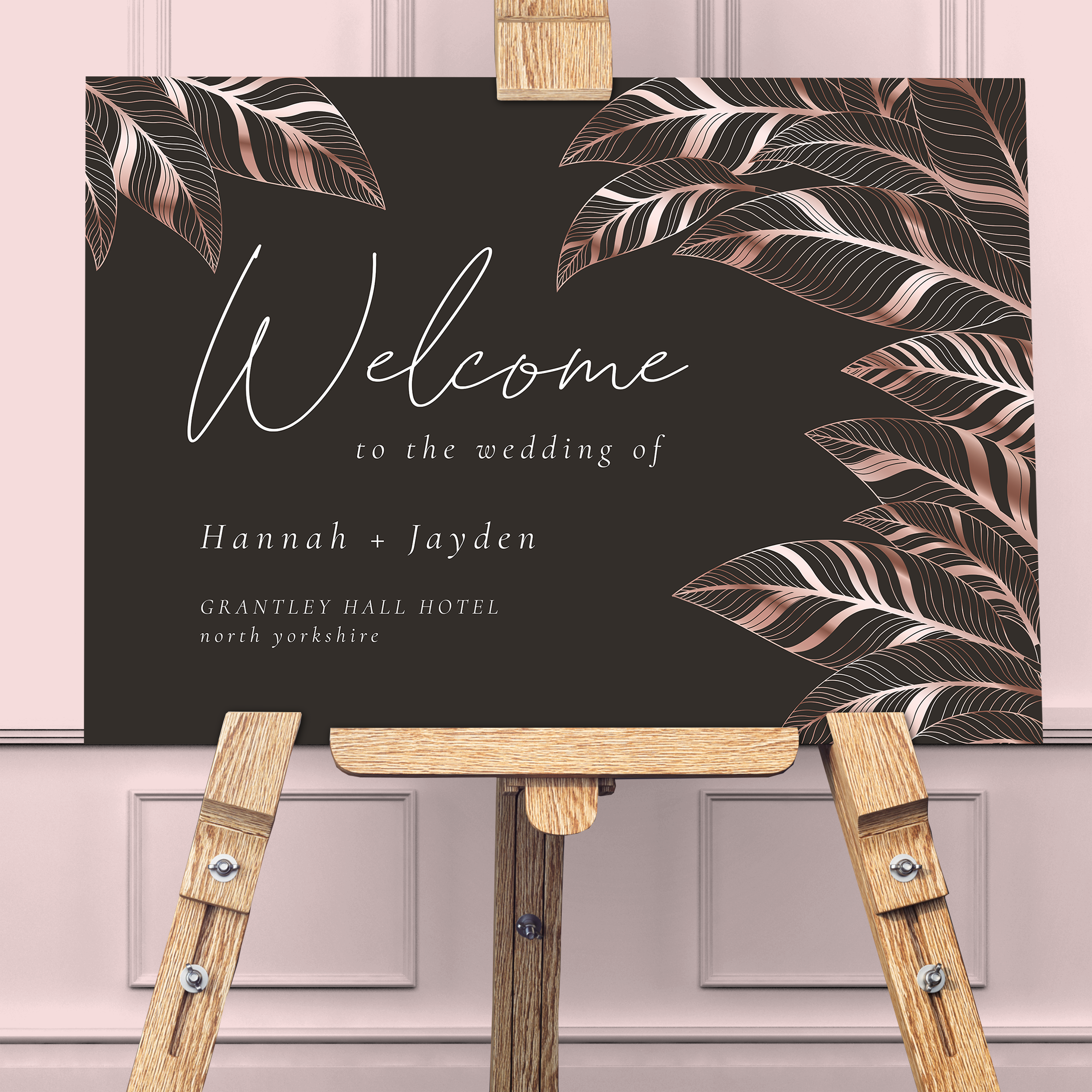 Make a statement with a beautiful sign board to welcome your guests. Available in a choice of boards and sizes, these sign boards will continue your aesthetic and look amazing when welcoming your guests outside your chosen venue. Please note, foil elements on my signboards will be a faux foil effect unless otherwise requested.