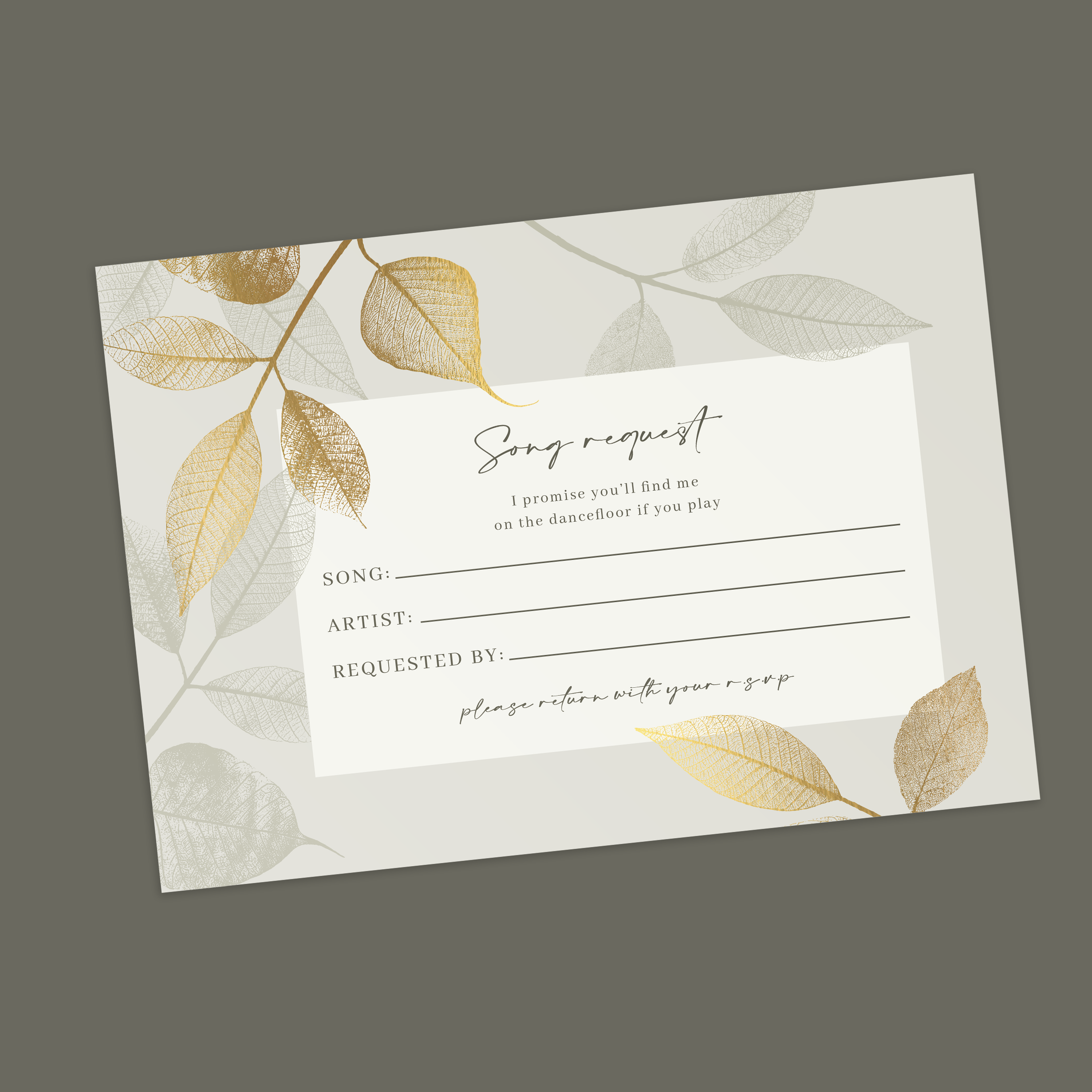Song request cards allow guests to contribute to the celebration by requesting their favourite music and will add a personal touch to the playlist. These cards ensure the dance floor stays lively and full of memorable moments.