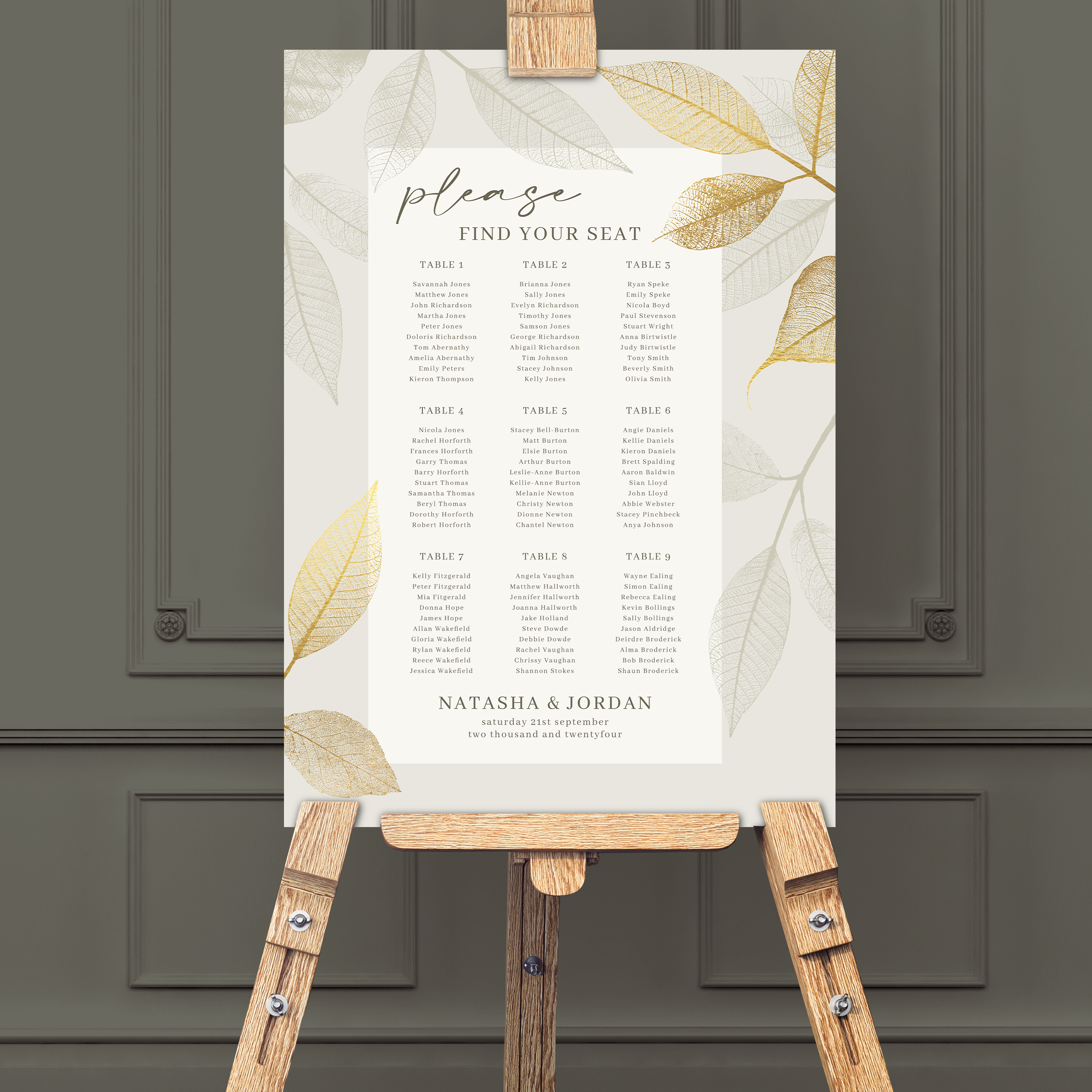 Printed on a choice of boards and sizes, your theme continues on a beautiful seating plan so your guests know where to go. Please note, foil elements on my signboards will be a faux foil effect unless otherwise requested.