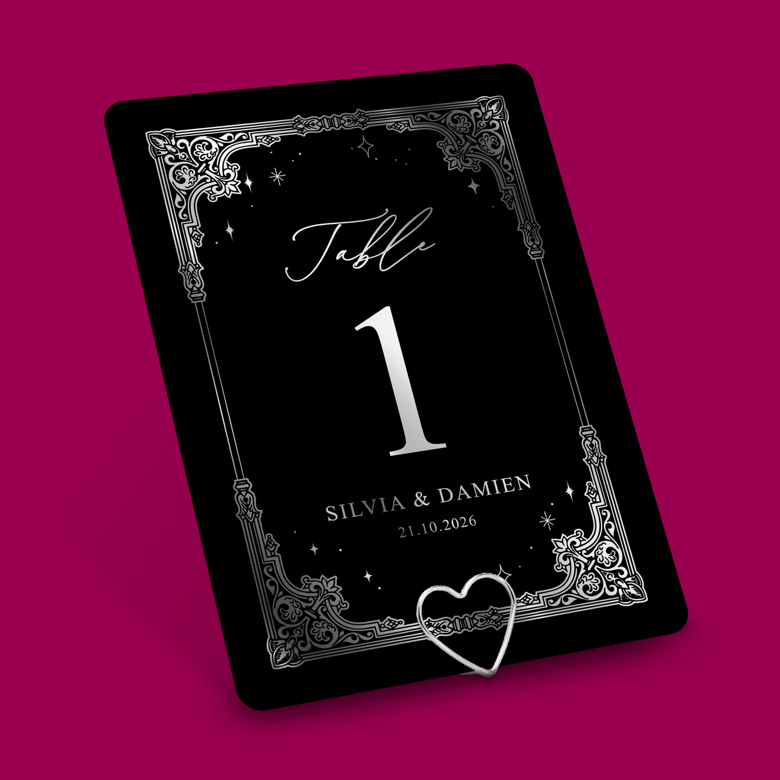 Placed prominently on each table, these cards add a touch of style while guiding guests to their seats, allowing them to settle in comfortably and enjoy the celebrations. Table number cards are printed on both sides and are available in a choice of sizes.
