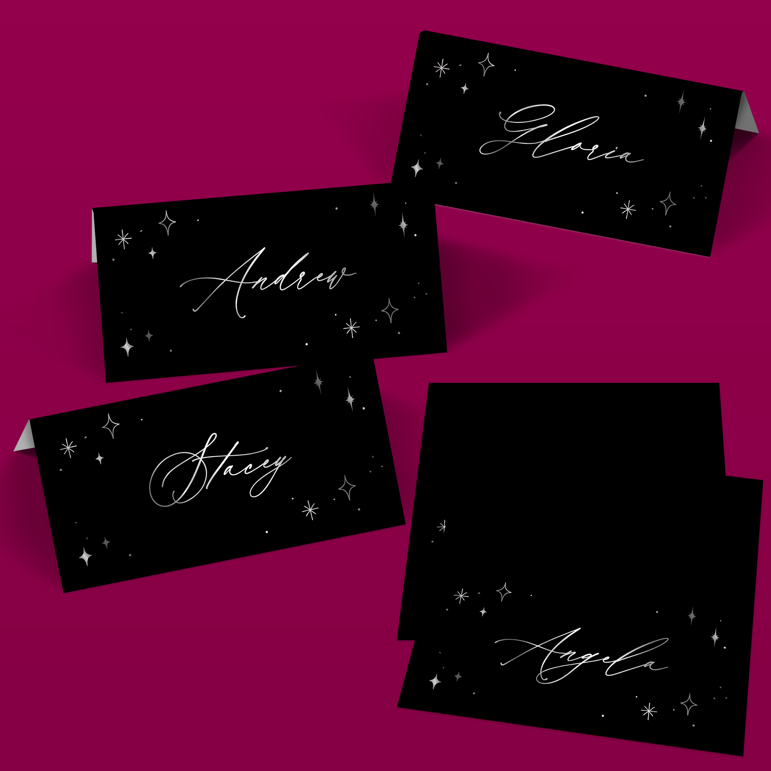 Help your guests find their seats with these folded place name cards. Available in two sizes, these place cards tie in with your theme perfectly. Also available are bespoke sizes to your specifications if you require something a bit more unique.