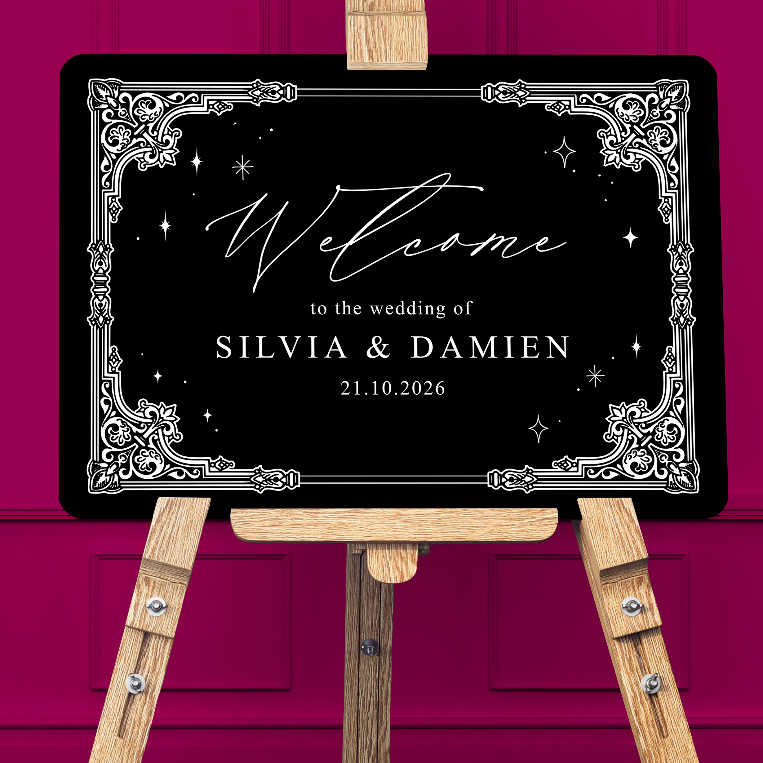 Make a statement with a beautiful sign board to welcome your guests. Available in a choice of boards and sizes, these sign boards will continue your aesthetic and look amazing when welcoming your guests outside your chosen venue. Please note, foil elements on my signboards will be a faux foil effect unless otherwise requested.