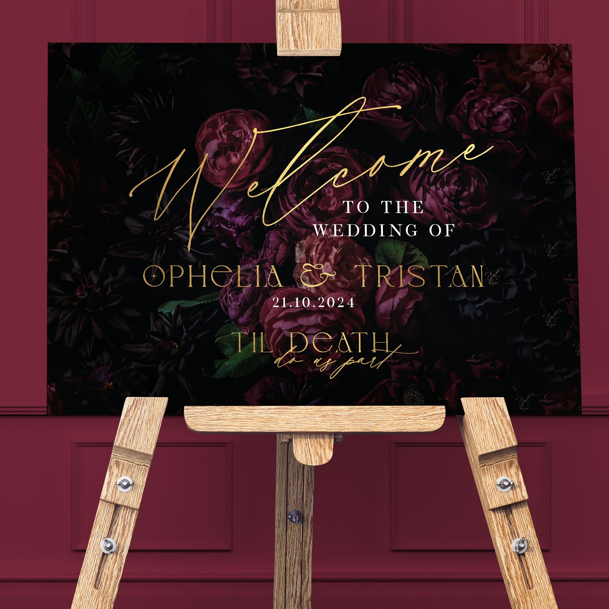 Make a statement with a beautiful sign board to welcome your guests. Available in a choice of boards and sizes, these sign boards will continue your aesthetic and look amazing when welcoming your guests outside your chosen venue. Please note, foil elements on my signboards will be a faux foil effect unless otherwise requested.
