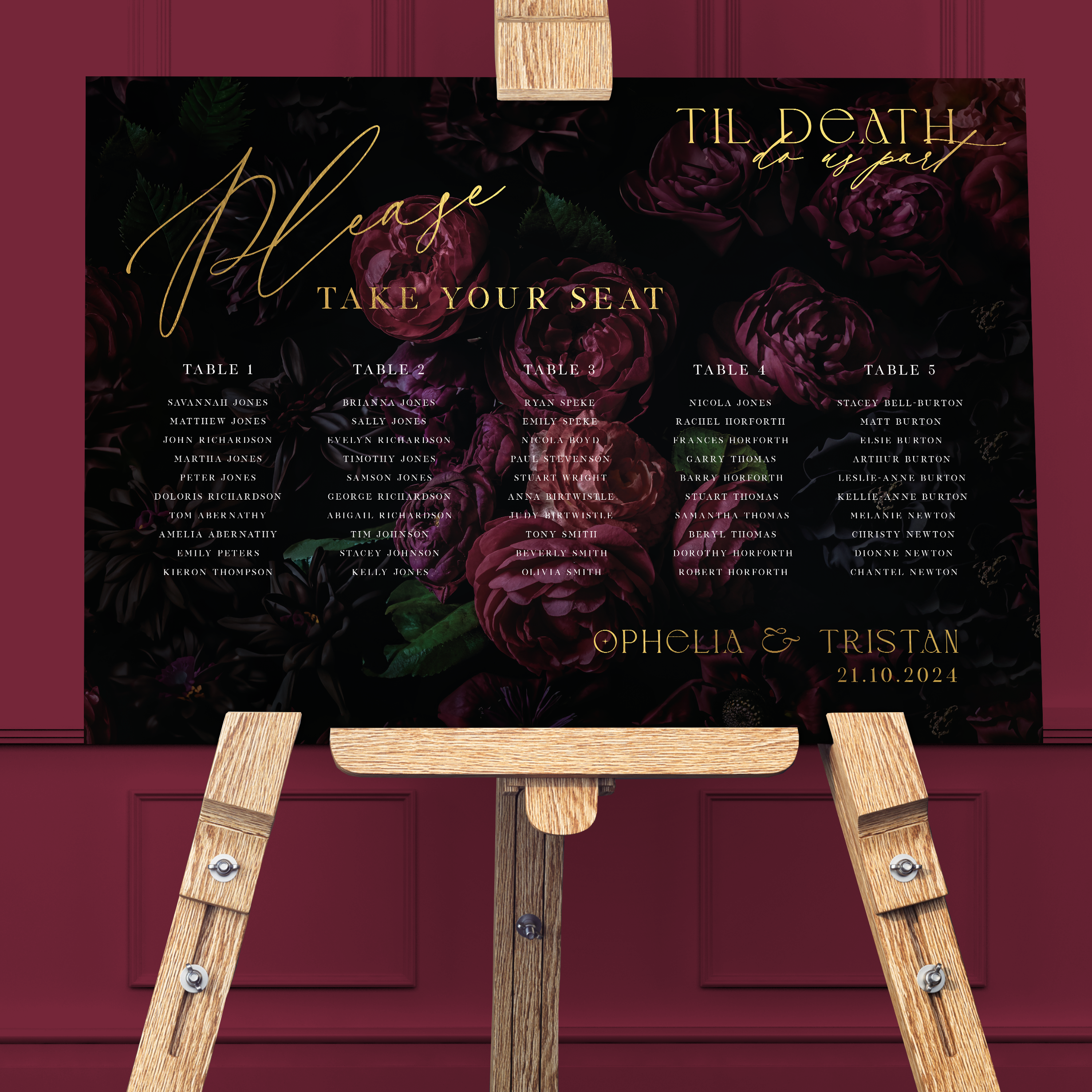Printed on a choice of boards and sizes, your theme continues on a beautiful seating plan so your guests know where to go. Please note, foil elements on my signboards will be a faux foil effect unless otherwise requested.