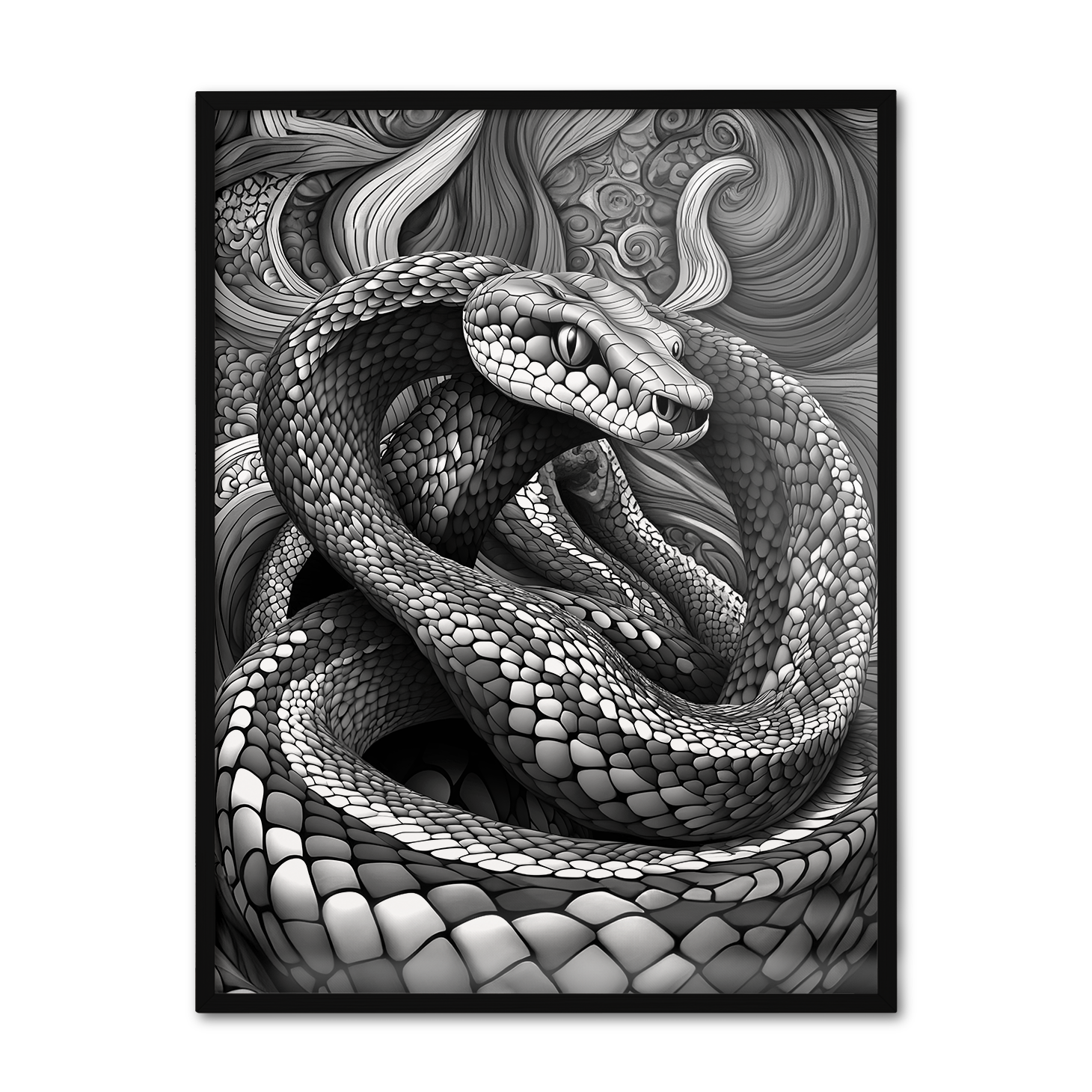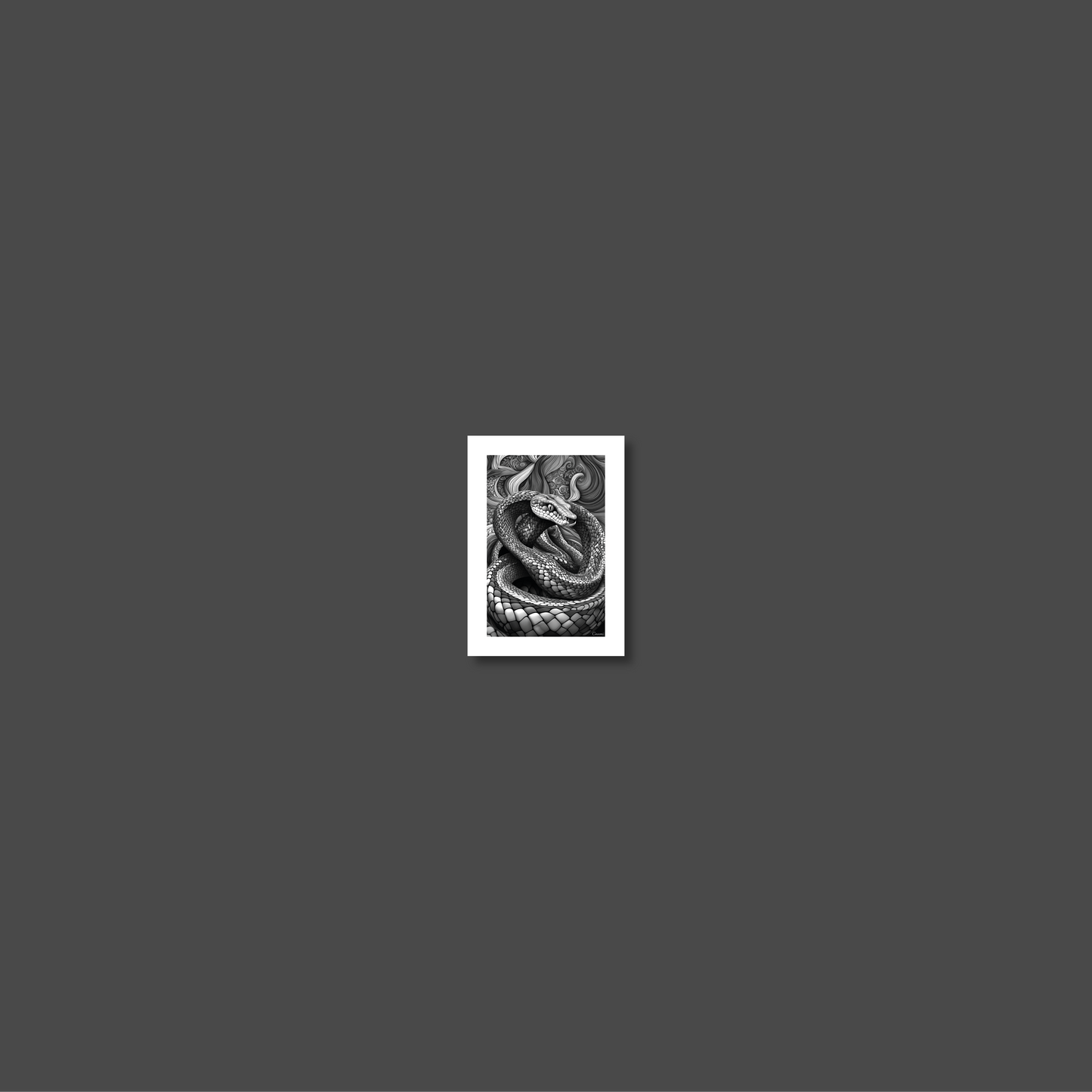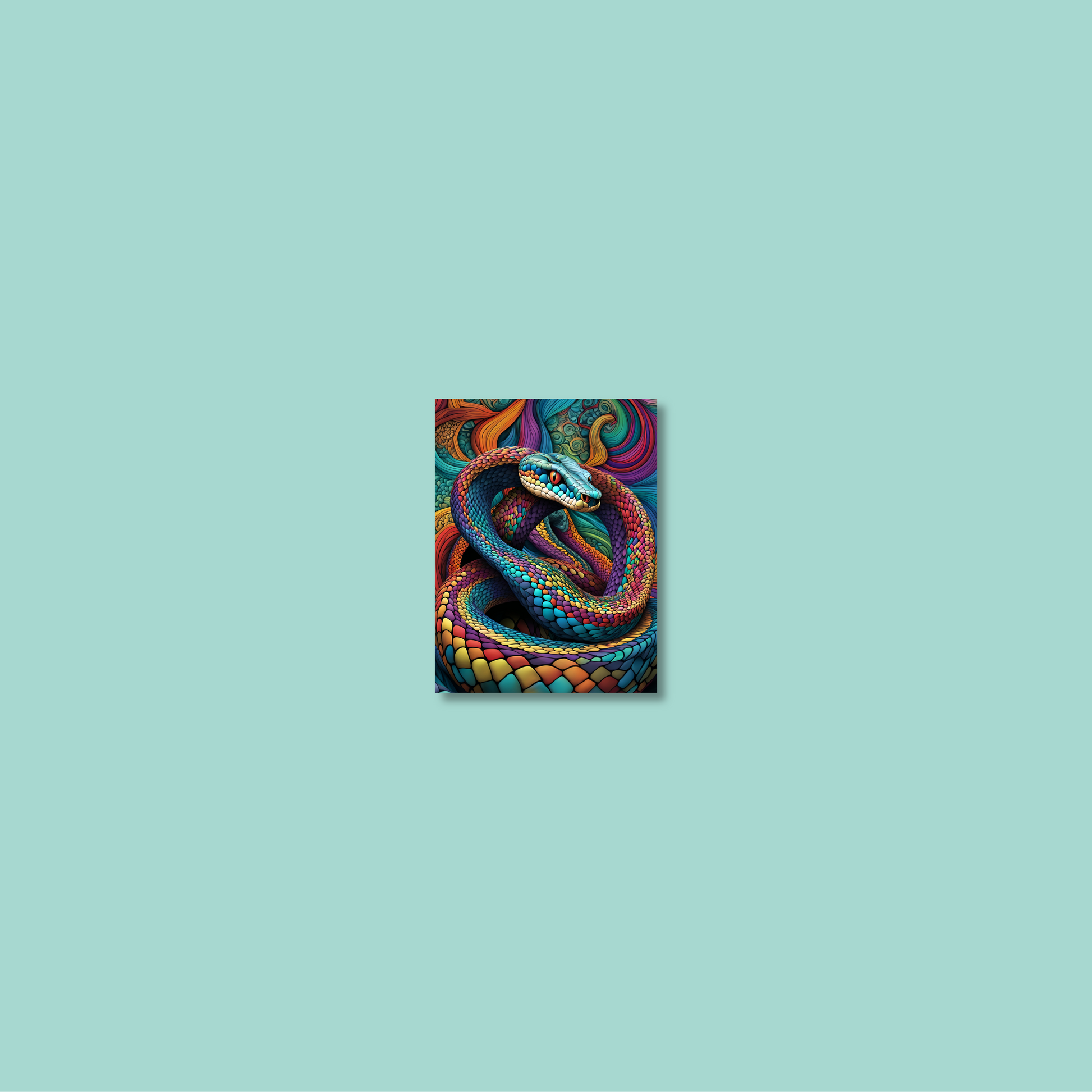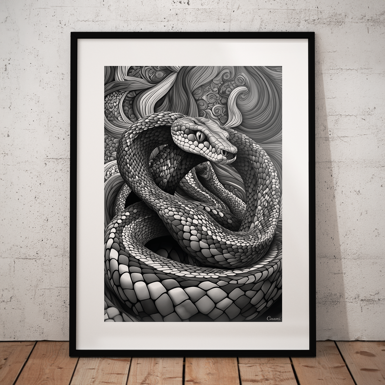 Artistic cobra art print in brightly coloured abstract lines. This design will make a bold statement in any room either alone, or combined with others in this collection to create a feature gallery wall. These posters are available full page or with a white passe-partout style border, and available full colour or black and white.