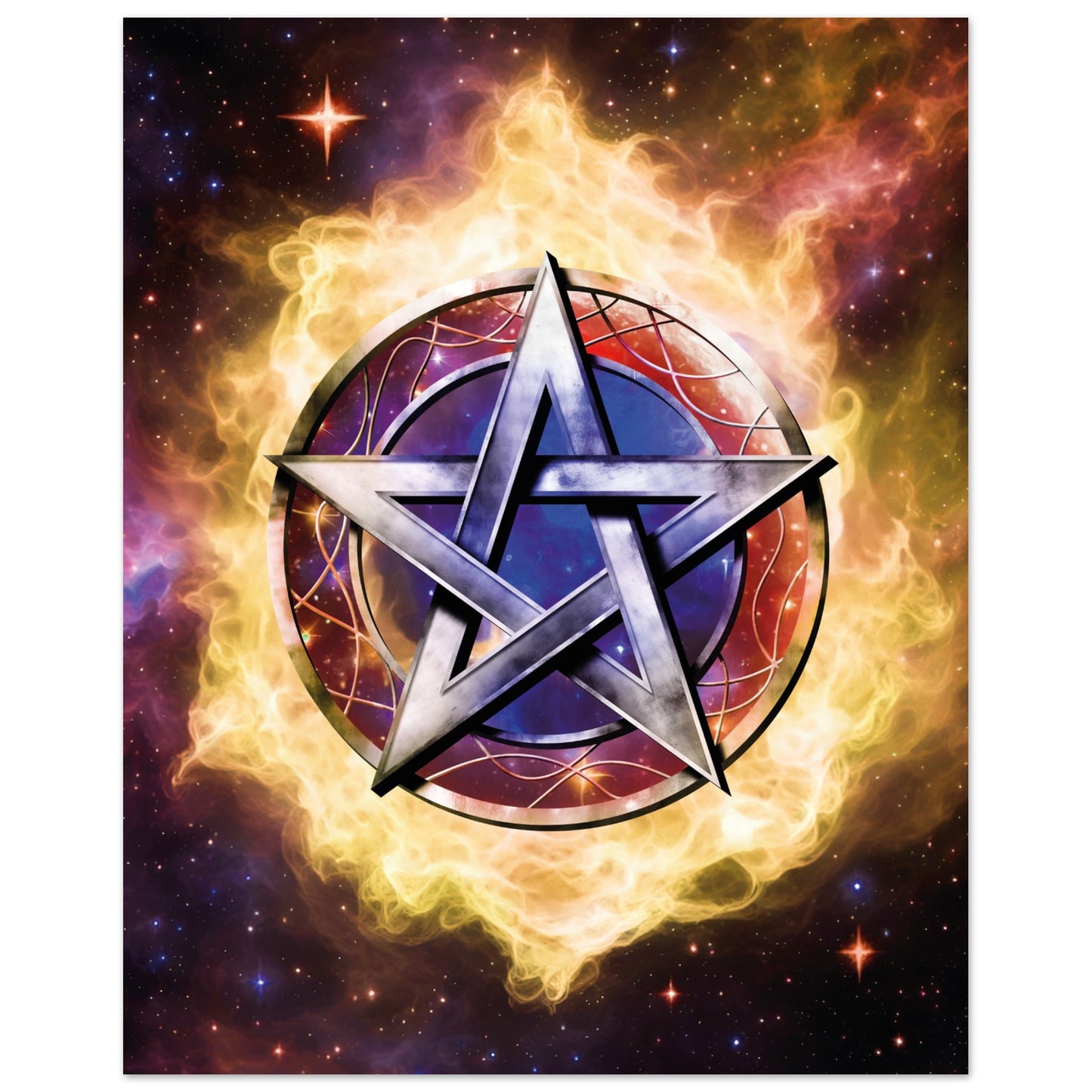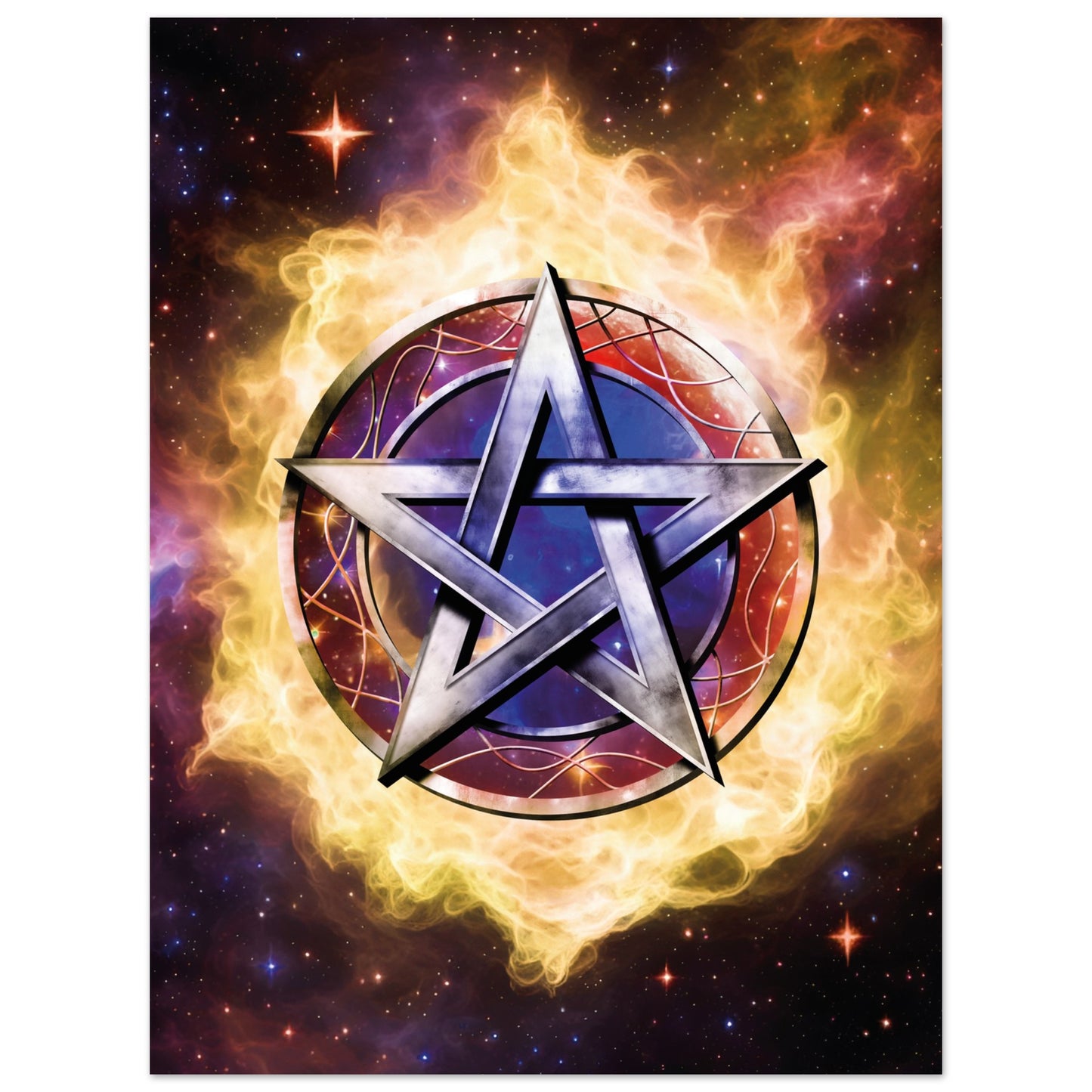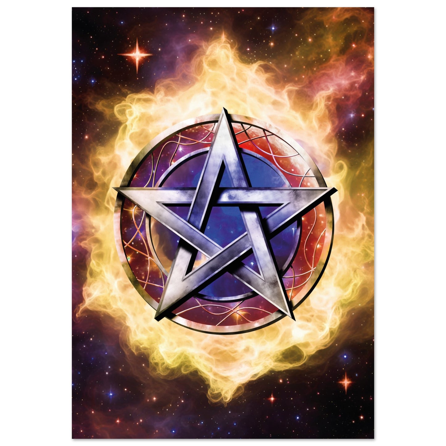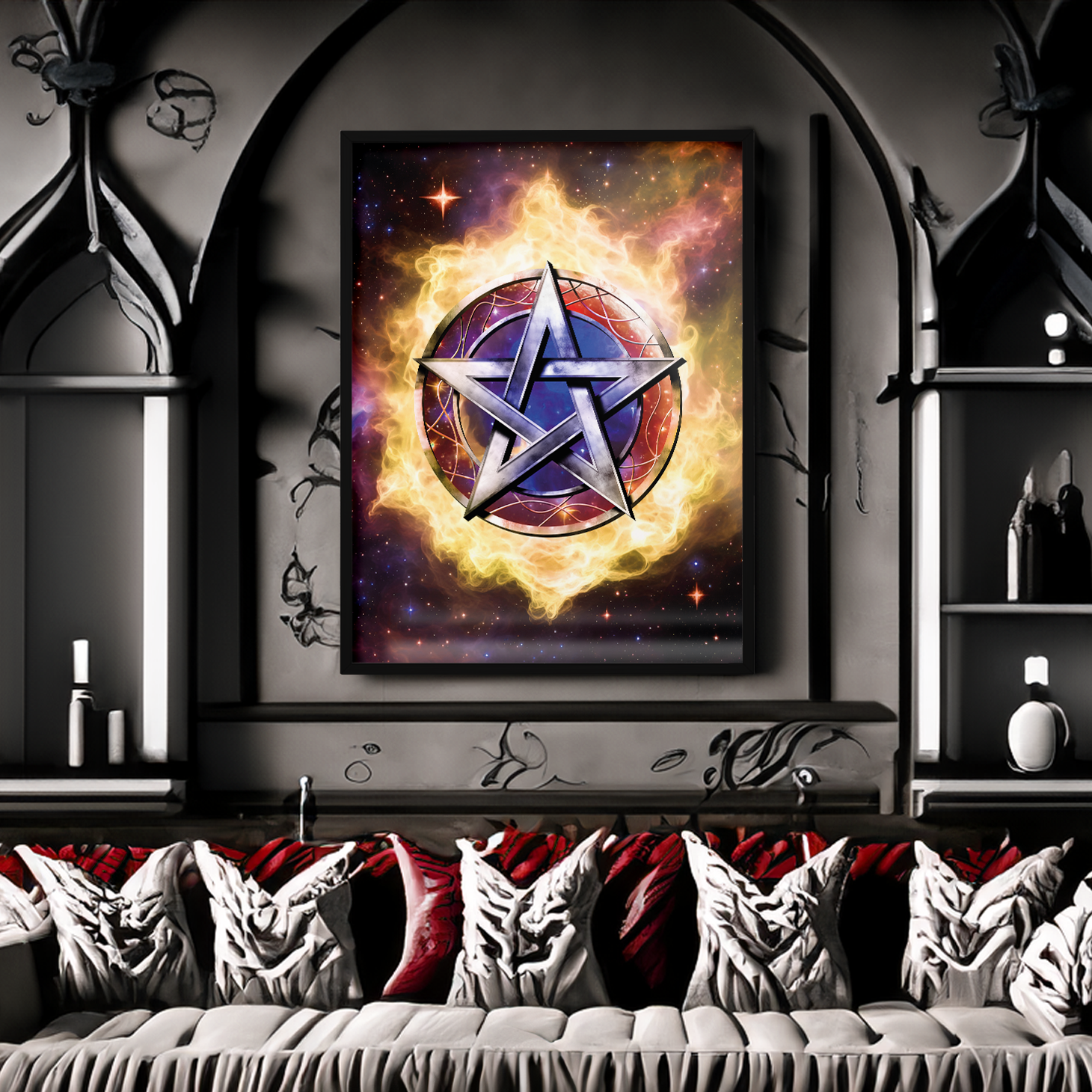 Gorgeous unframed poster with my 3D flaming pentagram design, available 6, bold colour variations and many different sizes.