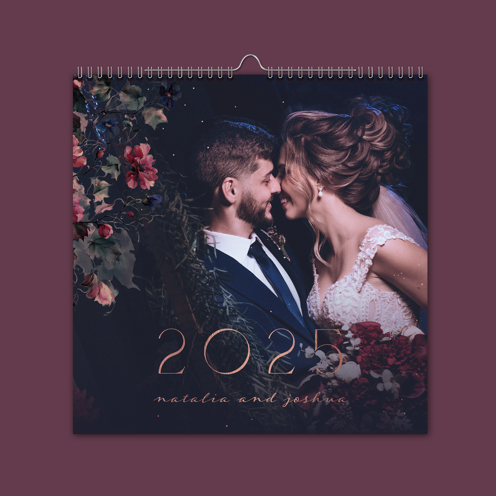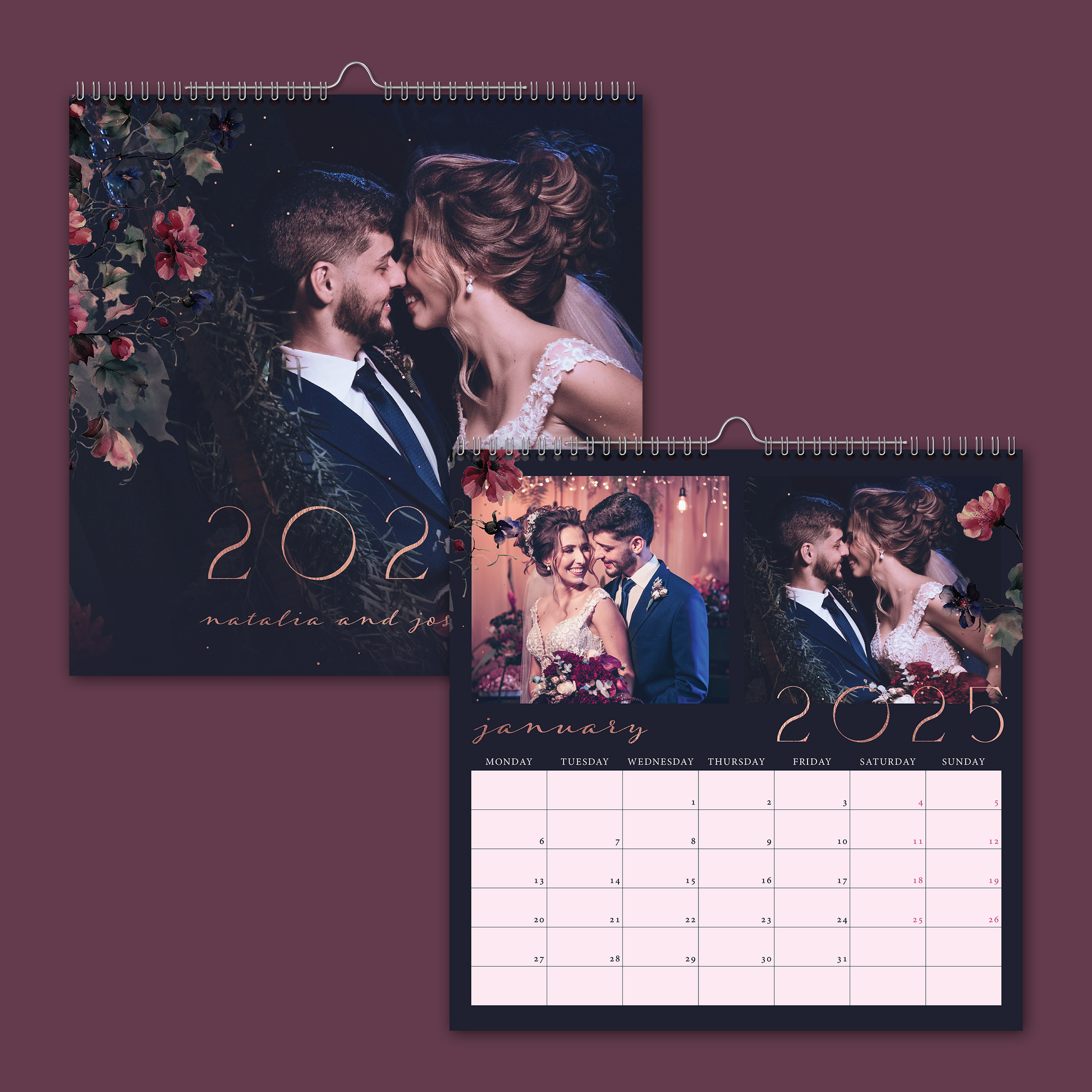 Beautiful, Square wall calendar in my Midnight Florals design. Make the most of your wedding day memories with a stunning wall calendar that features your favourite wedding photos.